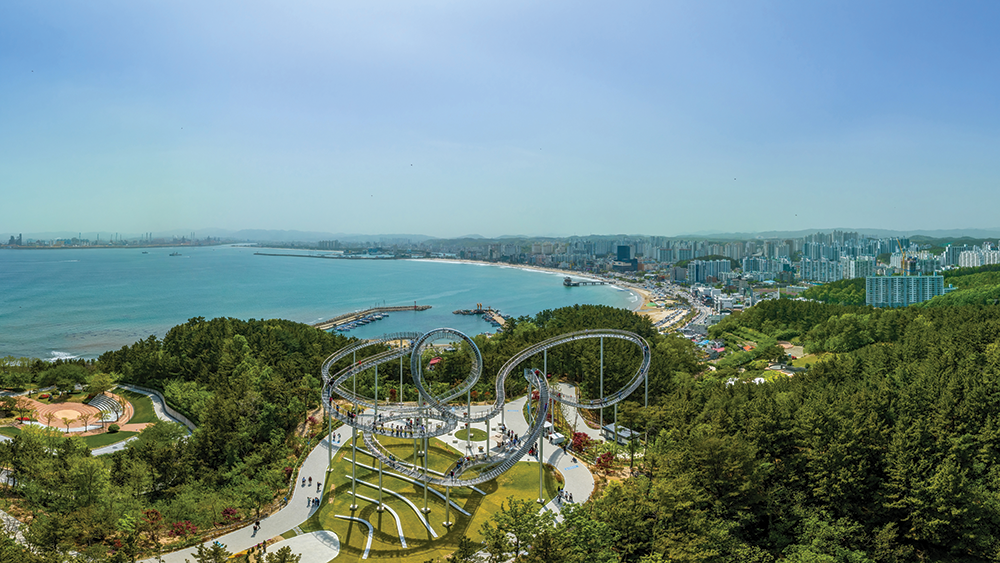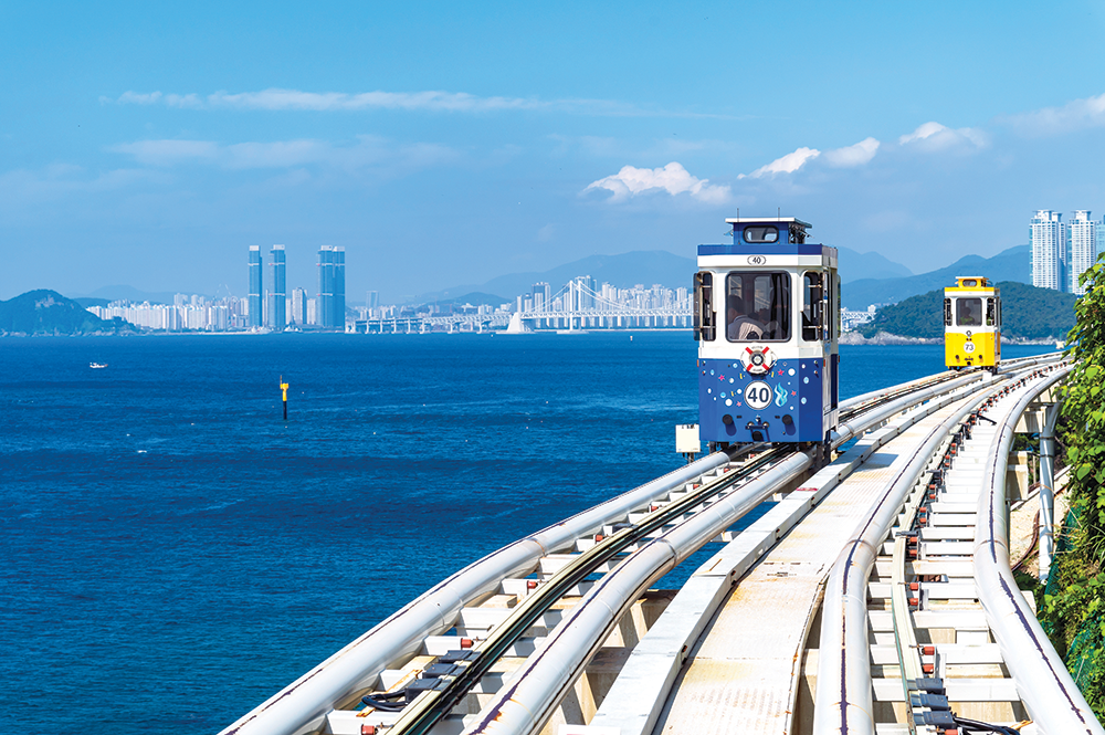 해운대에서 송정까지 이어지는 해안선을 따라 천천히 달리는 해운대블루라인파크는 부산의 여름을 가장 여유롭게 감상할 수 있는 길이다. 바다 옆 철로 위를 달리는 해변열차와 고가 레일 위를 오붓하게 이동하는 스카이캡슐은 각각 다른 속도와 높이로 여름 풍경을 전한다. 열차는 미포, 청사포, 송정을 천천히 잇고, 그 사이 해변 산책로와 푸른 바다, 휘어진 선로가 함께 펼쳐진다. 여름날, 바다와 나란히 달리는 이 철길은 부산의 또 다른 속도다.