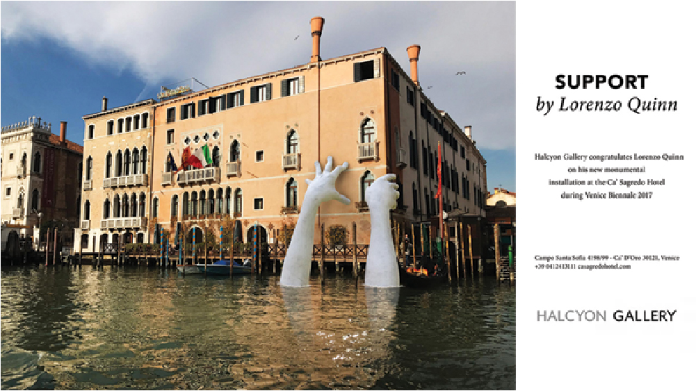 2017년 베니스 비엔날레에 거대한 손이 나타났다. 단단한 두 손은 고풍스러운 인테리어의 ‘카 사그레도 호텔’을 떠받쳤다. 로렌조 퀸의 <서포트>다. 베니스는 운하 도시로, 많은 이들이 찾는 관광지이자 지구온난화로 인해 해수면 상승의 위협을 받고 있는 곳이다. 이 손이 베니스를 물 속으로 끌고 들어갈지, 혹은 물에 잠기지 않도록 단단히 지키고 있을지는 우리가 어떻게 하느냐에 달렸다.