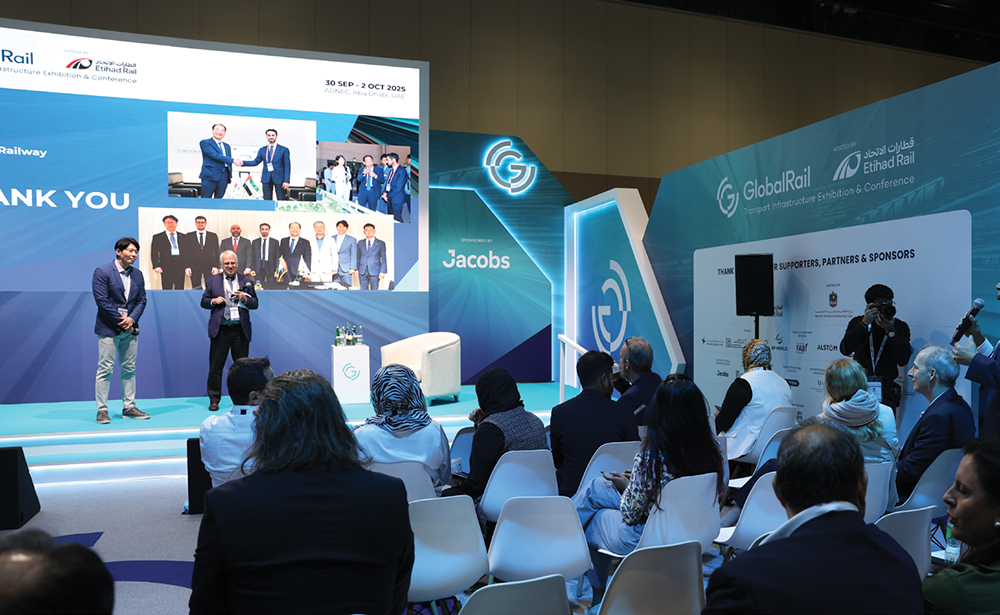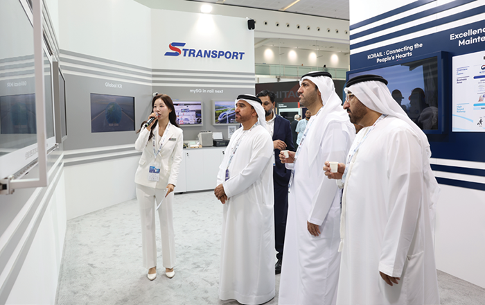 UAE 아부다비 국제전시회관(ADNEC)에서 2025년 9월 30일부터 10월 2일까지 사흘간 열린 ‘Global Rail 2025’는 100여 개국, 300개사 이상이 참여한 대규모 모빌리티 콘퍼런스다. 에티하드 레일(Etihad Rail)이 주최한 이번 행사에서 국가철도공단은 코레일·현대로템·에스트랜스포트와 함께 ‘K-철도 한국관’을 공동 운영해 국가 철도 기술의 저력을 한자리에서 선보였다. ‘From Seoul to the Soul of UAE’를 주제로 한 한국관은 총 160㎡ 규모로, 이 중 공단이 136㎡(전용+공용)를 담당하며 메인 전시를 이끌었다.