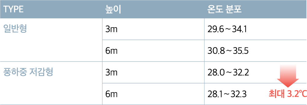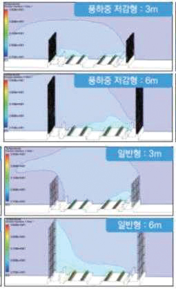 레일면 기준 온도 분포높이가 높거나 교량 구간에 설치되는 방음벽은 열차가 지나갈 때 강한 바람 압력(풍하중)을 정면으로 받기 때문에, 이를 견디기 위해 지주와 기초를 매우 크게 만들거나 교량의 상부 구조물을 대대적으로 보강해야 했다. ‘풍하중 저감 흡음형 방음 패널’은 통기부를 통해 바람의 일부를 효율적으로 흘려보냄으로써 방음벽이 받는 풍하중을 최소 15%에서 최대 25%까지 줄인다. 교량의 구조적 안전성을 확보하는 동시에, 과도한 보강 공사를 최소화하여 건설 과정을 단순화하고 안전성을 높였다.