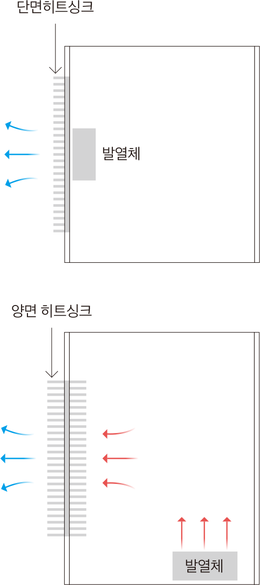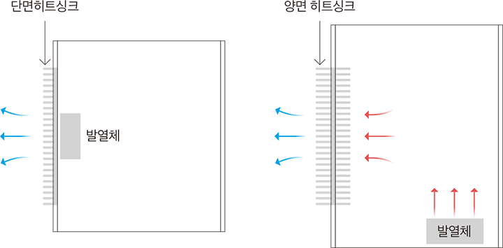 신기술의 핵심은 ‘외부 공기 유입 없이 어떻게 열을 식히느냐’에 있다. 공기가 드나들지 않는데 열을 내보내는 비결은 바로 금속을 타고 이동하는 ‘열전도’ 원리다. 열 전도성이 뛰어난 알루미늄 소재로 ‘양면형 압출 히트싱크’를 제작해 외함 벽면에 설치한다. 단순히 금속이 열을 전달하는 것에 그치지 않고, 내부와 외부에서 공기를 강제로 순환시키는 ‘대류’ 현상을 결합했다. 외함 내부의 뜨거운 열기를 히트싱크의 촘촘한 핀(Fin)으로 전달하면, 이 열이 금속을 타고 밖으로 넘어가 외부 공기와 만나 식는 원리다.
