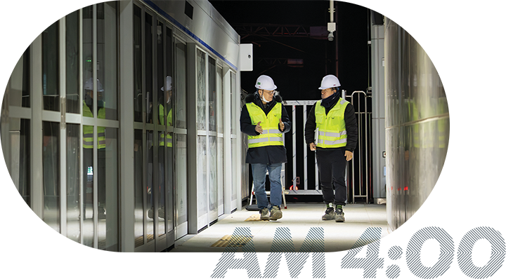 동이 트기 전의 북삼역을 뒤로하며 점검반은 철수 준비를 서두른다. 모두가 잠든 밤사이, 보이지 않는 곳에서 묵묵히 자를 대고 수평을 맞추는 이들이 있기에 2026년 2월, 북삼역을 이용할 수천 명의 시민은 안심하고 열차에 몸을 실을 수 있을 것이다. 그렇게 안전이라는 이름의 철길은 그렇게 한 땀 한 땀 완성되고 있었다.