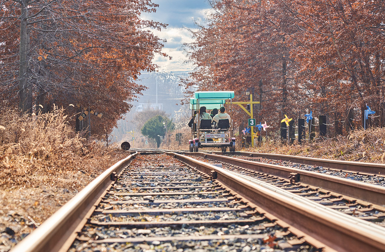 곳곳에 마련된 재미를 더해주는 요소들도 즐길 거리다. 자갈 위 쭉 뻗은 철로를 보는 것만으로도 묘한 향수가 몽글몽글 올라오는데, 어두운 터널을 지날 때면 화려한 LED 조명에 신나는 레트로 음악까지 흘러나온다.